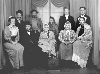 The Stenness Amateur Dramatic Society's cast of 'The Masterful Wife', winner of the Bon Accord Cup for the best rural entry in the North East Division of the Scottish Community Drama Association and also the cup for the best rural entry in the Orkney Drama Festival, both 1954. Back right is Peter Leith of Appiehouse, Stenness.