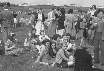 Spectators at a Stromness Academy sports day, on the Market Green, Stromness. Date unknown.