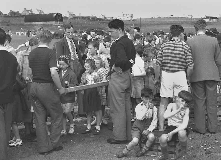 Spectators at a Stromness Academy sports day, on the Market Green, Stromness. Date unknown.