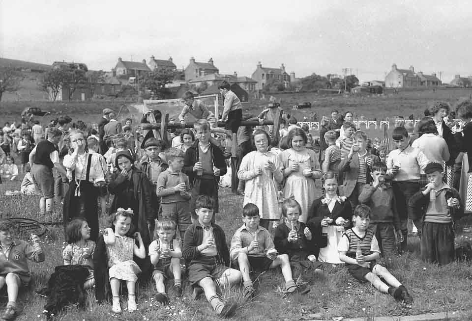 Spectators at a Stromness Academy sports day, on the Market Green, Stromness. Date unknown.