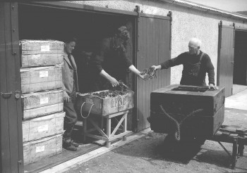 Packing lobsters for shipment south, Stromness. Date unknown.