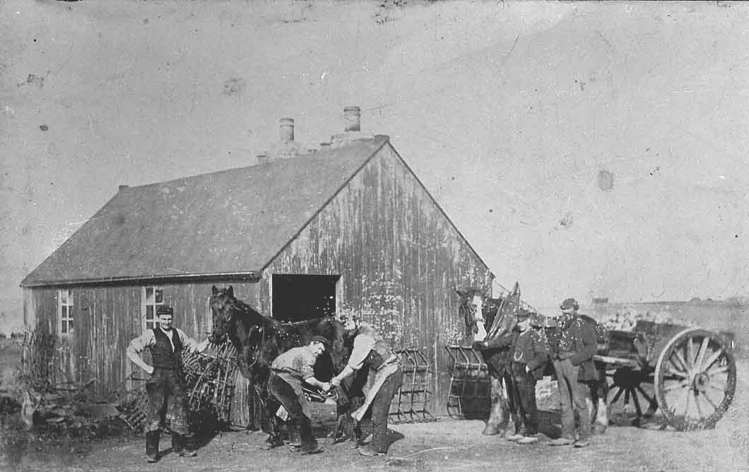 Copy negative showing a Blacksmith at work, South Ronaldsay. Date unknown.