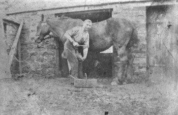 Copy negative showing a Blacksmith at work, South Ronaldsay. Date unknown.