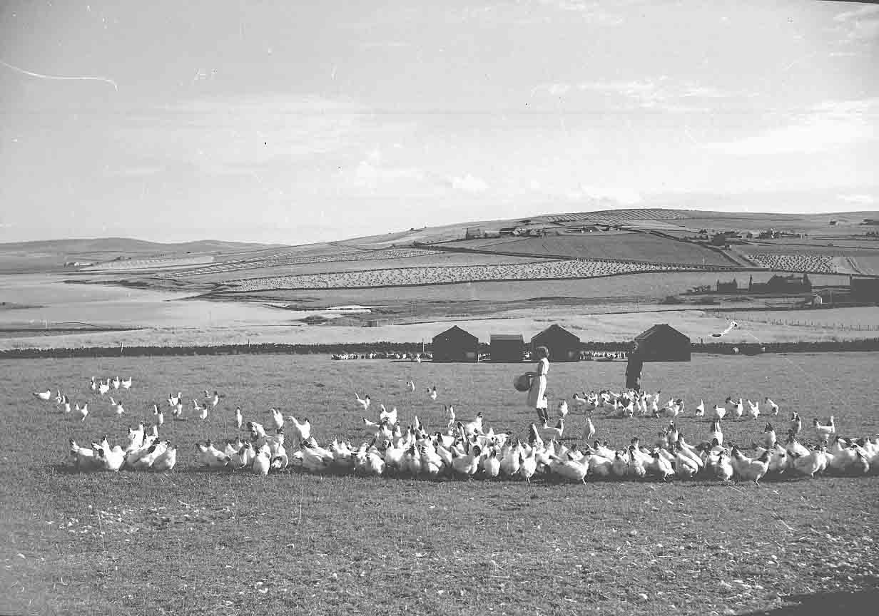 Feeding Light Sussex Hens, Voy, Sandwick, 1959.