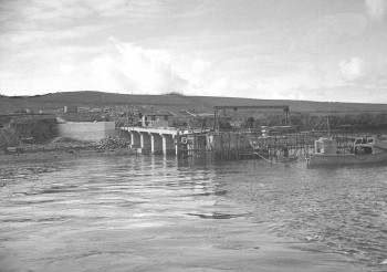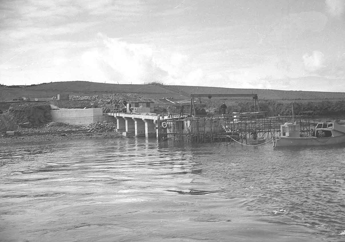Construction of a new pier on Graemsay, 1955. See Orcadian 21/7/1955, page 5.