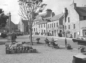 Tankerness House, Broad Street, Kirkwall, seen from the Kirk Green, c.1950s, with the Covenanters Memorial on the left.