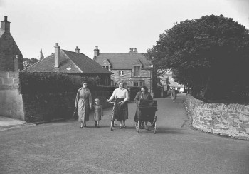 Willow Road, Kirkwall, c.1950s. The woman with the pram is Mrs Ada Johnston.