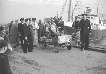 Farewell to 'Stewart the Steward' from the 'St. Ola', Stromness Pier. Date unknown.