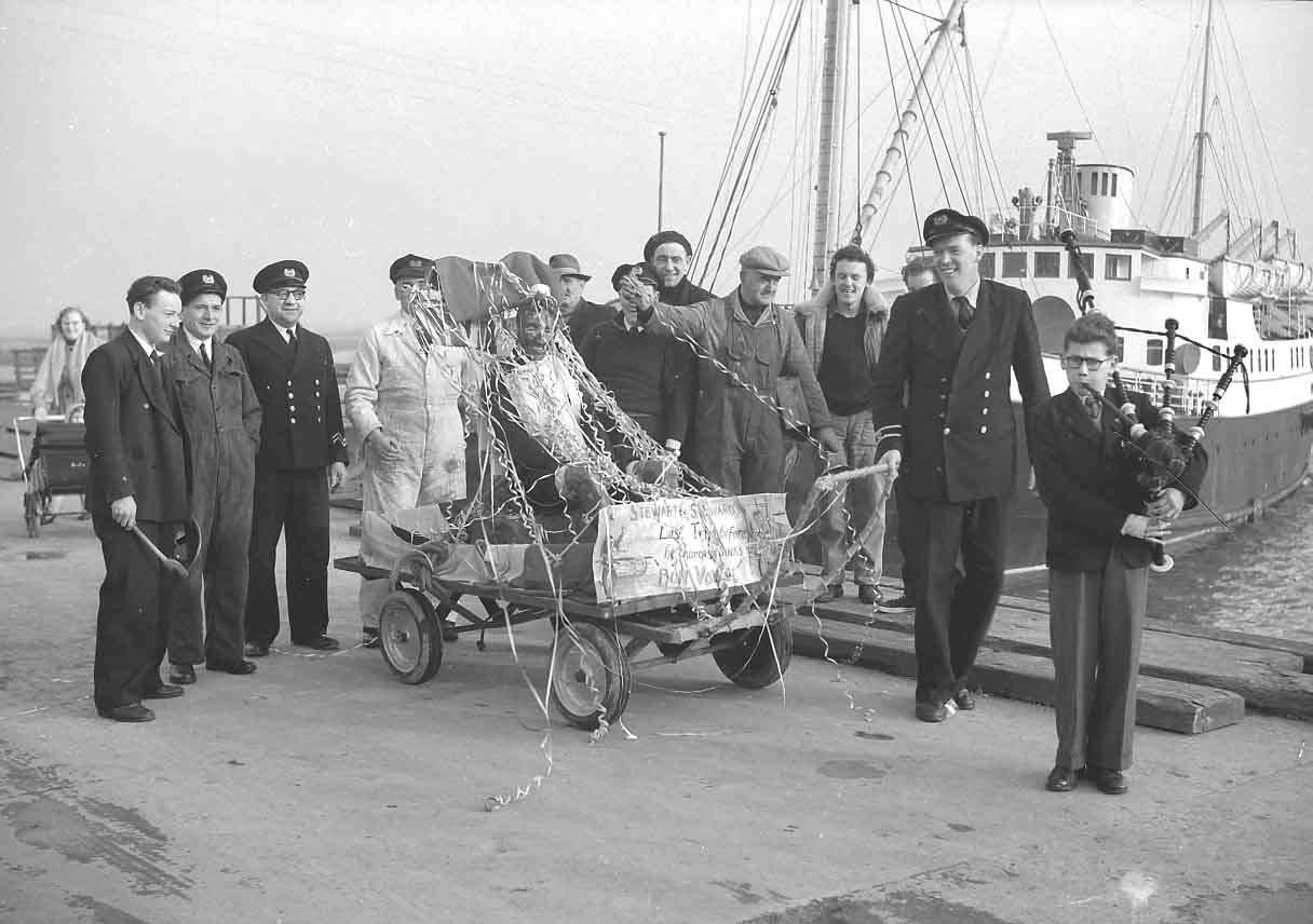 Farewell to 'Stewart the Steward' from the 'St. Ola', Stromness Pier. Date unknown.