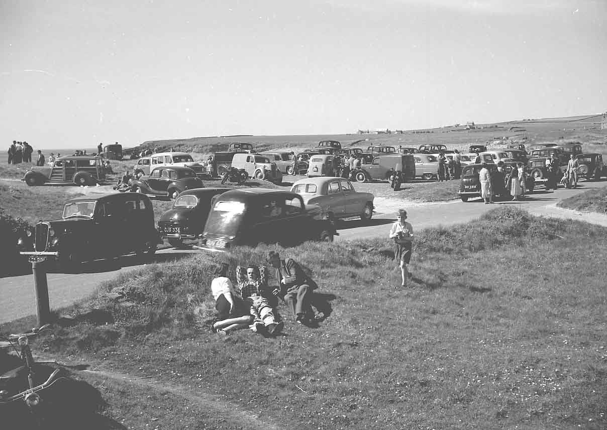 A busy Sunday at the Bay of Skaill, Sandwick, one of Orkney's most popular beaches in the summer, c.1957.