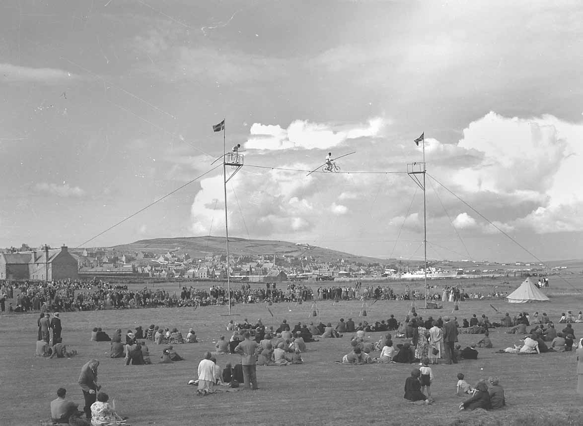 High Wire Act, 'The Two Waldix' at Stromness Shopping Week, 1953. See Orcadian 30/7/1953, page 5.
