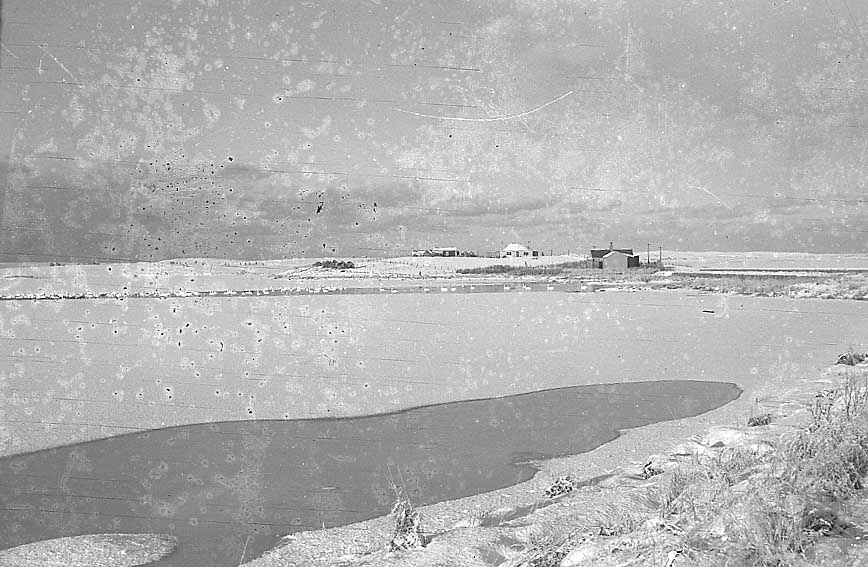 Swans find an unfrozen patch on Stenness Loch, c.1950s. Negative badly marked.