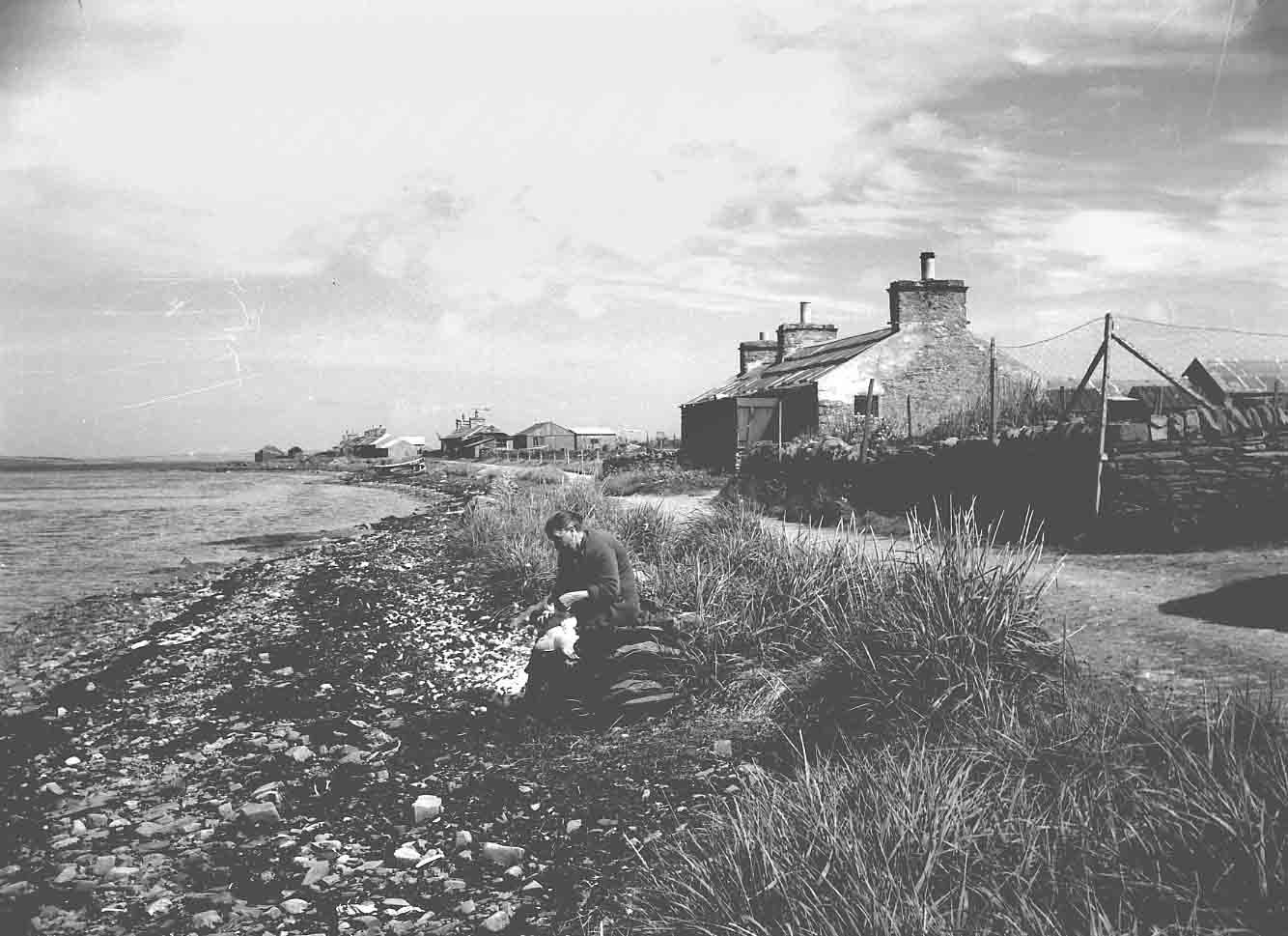 A woman plucking a hen at Broughton, Westray, c. 1950s.