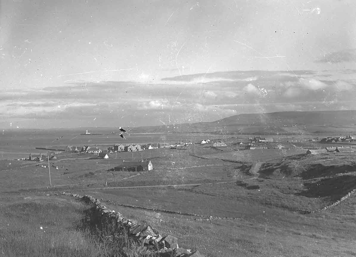 Looking over Stromness towards Graemsay and Hoy High Lighthouse, c.1950s.