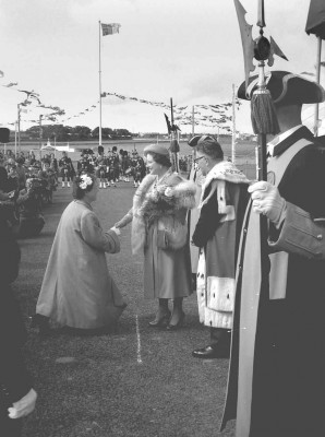 The Queen Mother during a visit to open the King George V Playing Fields at Pickaquoy, 9th August 1956.