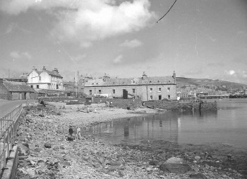 Along the Ness Road, Stromness, with the Lighthouse Shore Station on the left and the Double Houses in the centre, c.1950s.