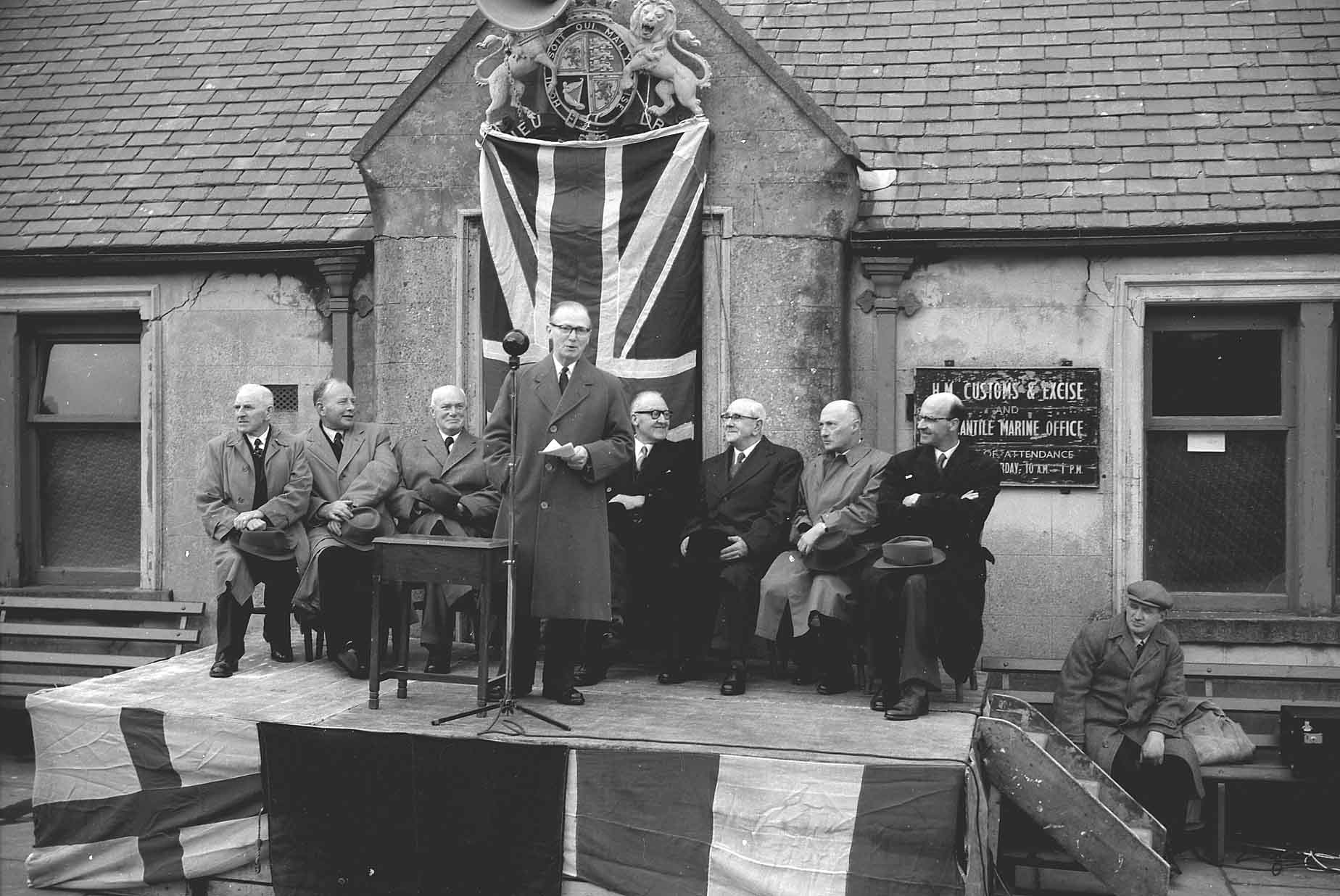 A speech outside the Stromness Customs & Excise office during Shopping Week, date unknown.
