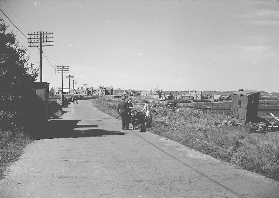Two women collecting driftwood in Pierowall, Westray, c.1950s.