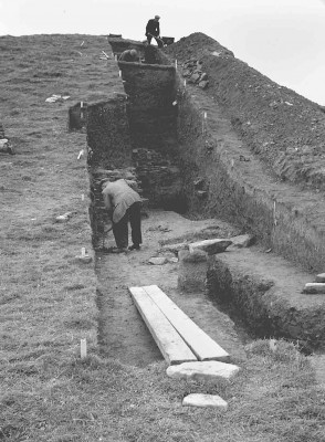 During July and August of 1954 Professor V. Gordon Childe supervised excavations of the South East face of Maeshowe chambered cairn, Stenness. The excavations took 3 weeks and a 6 feet wide incision was made.