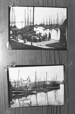 Copy negative of two fishing scenes in Stromness, c.1900.