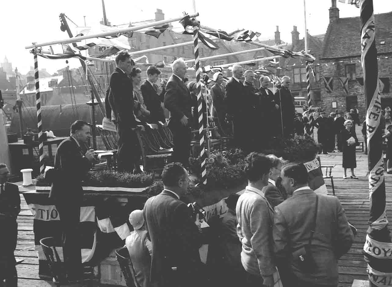 The naming ceremony for the Stromness Lifeboat, NLB Archibald and Alexander M. Paterson, on 25/8/1955. See Orcadian 1/9/1955, page 3.