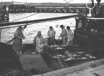 A seine net fishing boat in Stromness Harbour, c.1950s.