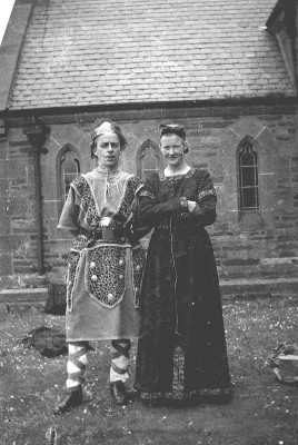 Sandy and Kitty Tait, actors in the St. Magnus Pageant in Brandyquoy Park, Kirkwall, 29th July 1937. Staged to commemorate the octo-centenary of St. Magnus Cathedral.