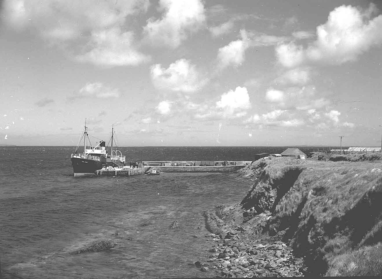 The Steamer SS Earl Sigurd at the South Pier, Eday, c.1950s.