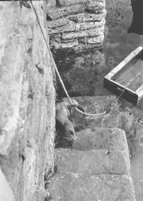 An otter playing in the water, Stromness, 1962. The otter had been rescued on Graemsay by the Lighthouse Keepers and taken to the Lighthouse Buildings in Stromness where it was reared by the Skinner family. See Orcadian 6/12/1962, page 3.
