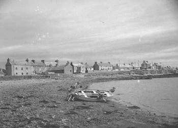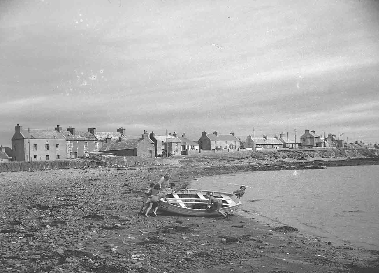Children with a boat, St. Mary's village, Holm, c.1950s.