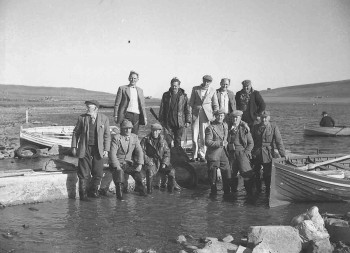 Fishermen at Loch of Boardhouse, Birsay, for the 1955 Inter-County competition. Orkney retained the trophy.