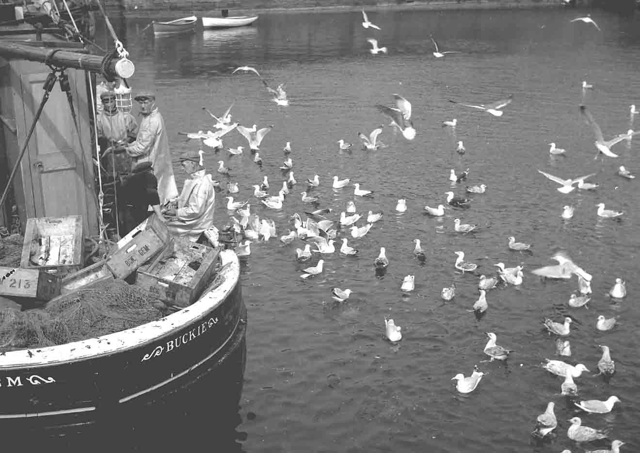 A Buckie fishing boat in Stromness Harbour, c.1950s.
