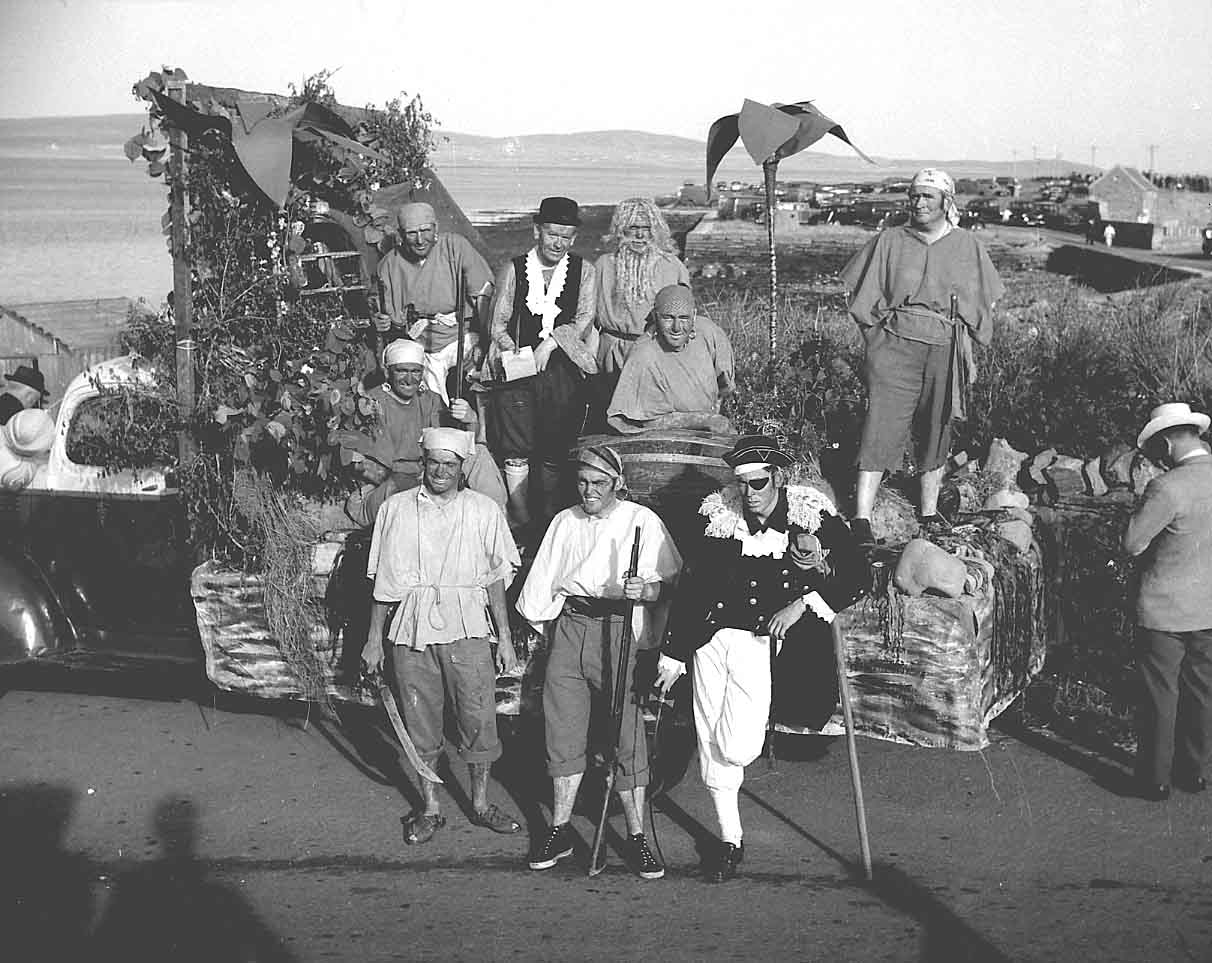 Entrants in a Stromness Shopping Week parade, 'Treasure Island', 1955.