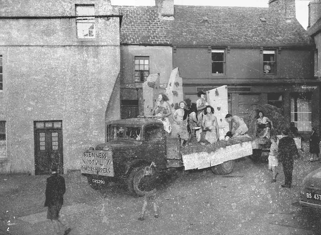 The 'Stenness Devil Worshippers', winning tableau in the Stromness Shopping Week, 1955. See Orcadian 28/7/1955, page 2.