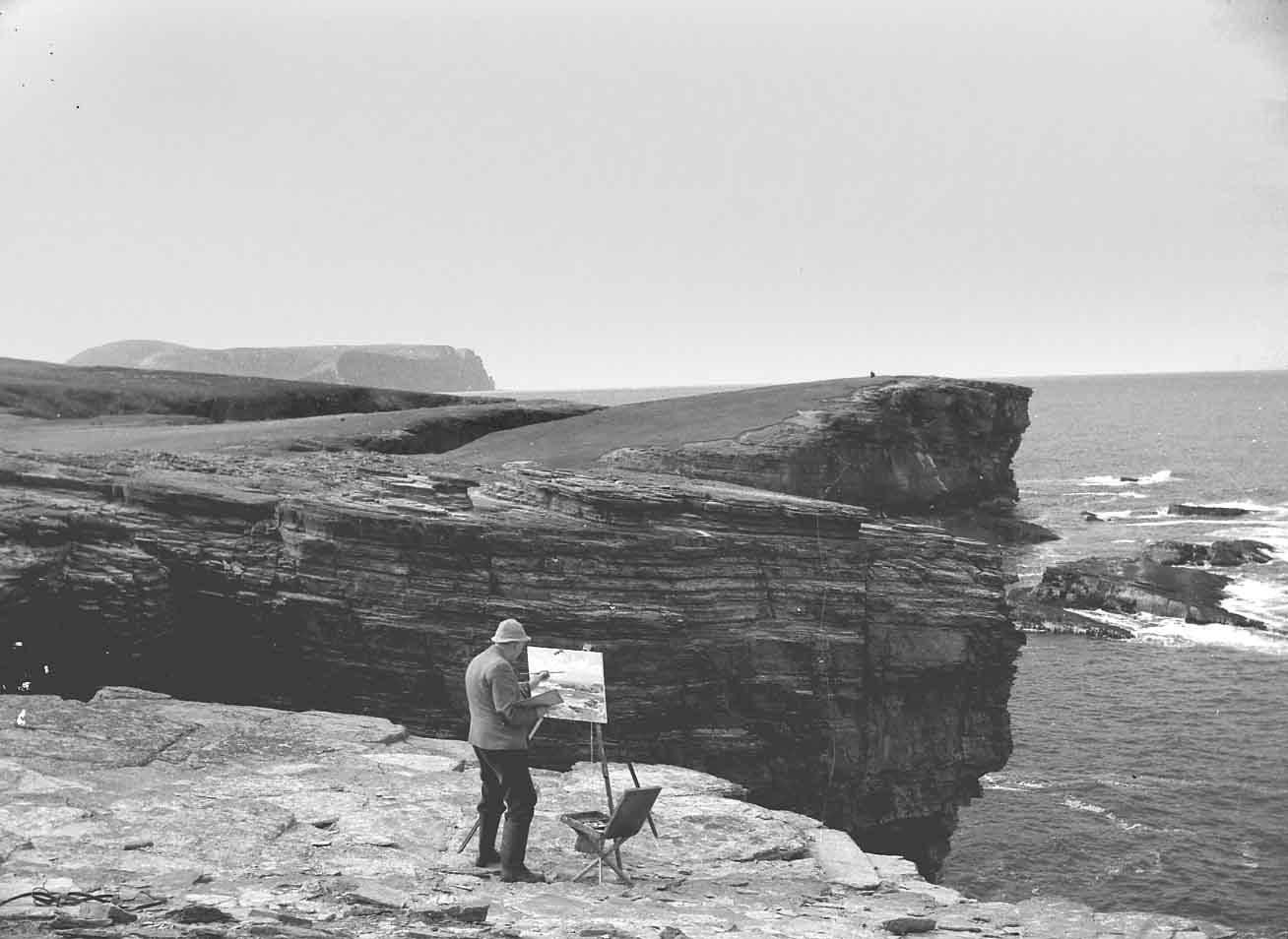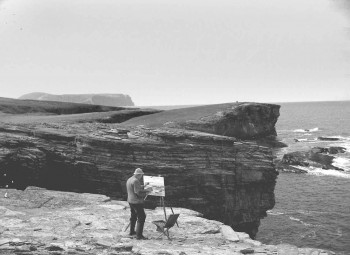 Artist Stanley Cursiter at Yesnaby, Sandwick, c.1960s.