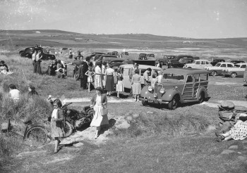 A busy Sunday at the Bay of Skaill, Sandwick, one of Orkney's most popular beaches in the summer, c.1957.