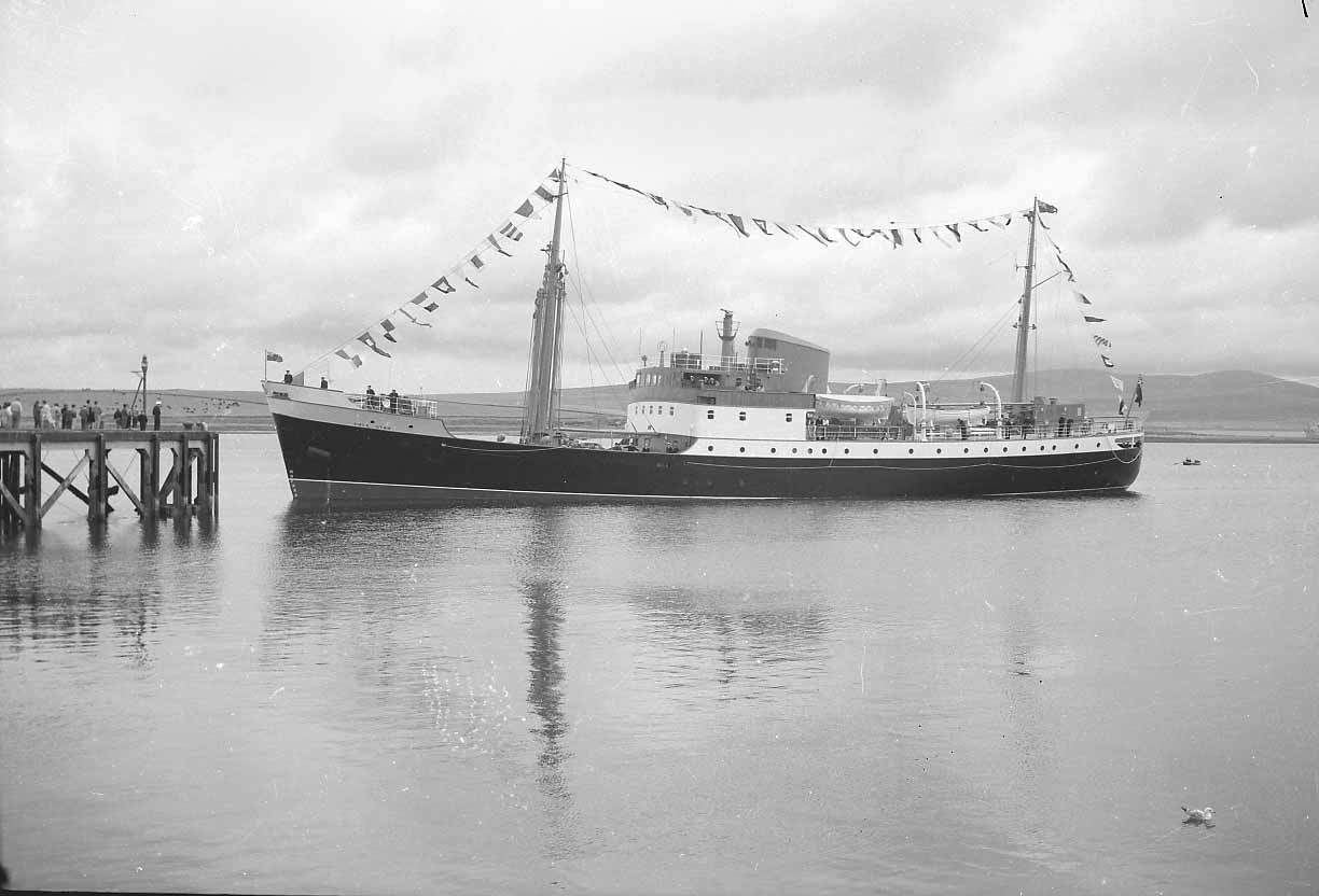 The new NLB Pole Star arriving at Stromness for the first time, on 22/7/1961. See Orcadian 27/7/1961, page 5.