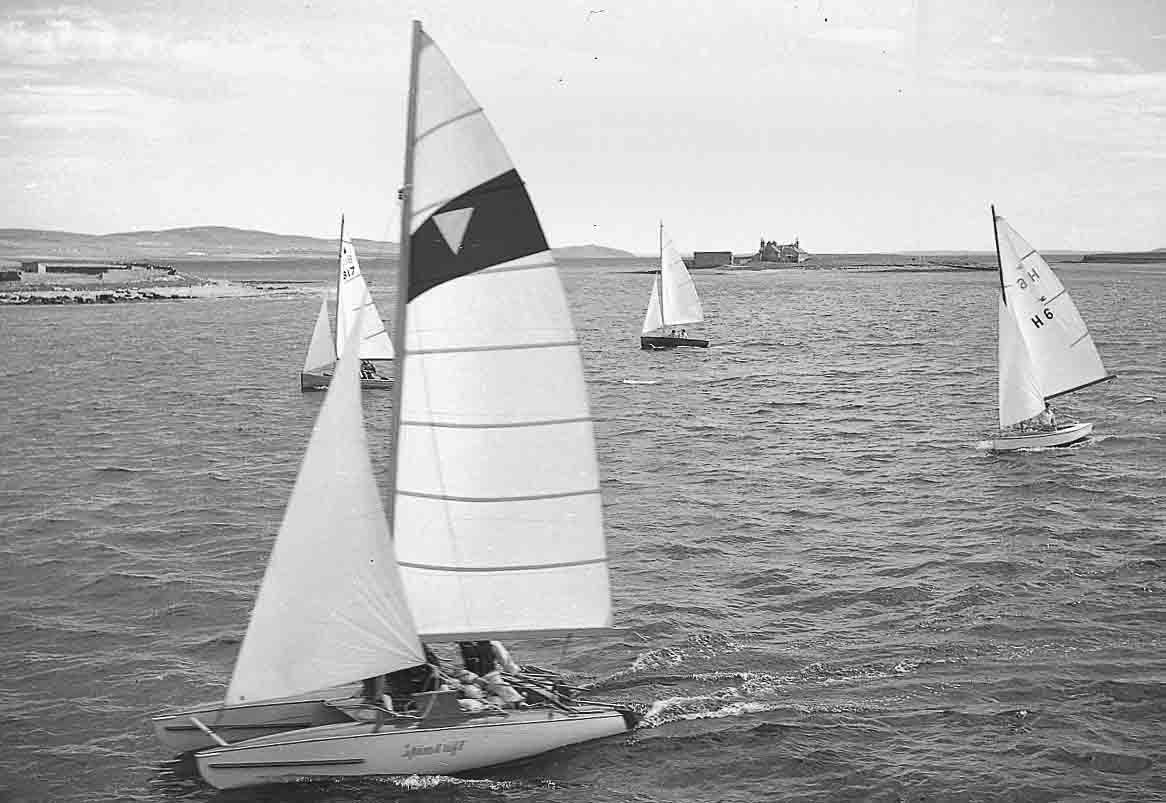 Action from a Stromness Regatta, with the Catamaran 'Spindrift' in the foreground, date unknown.