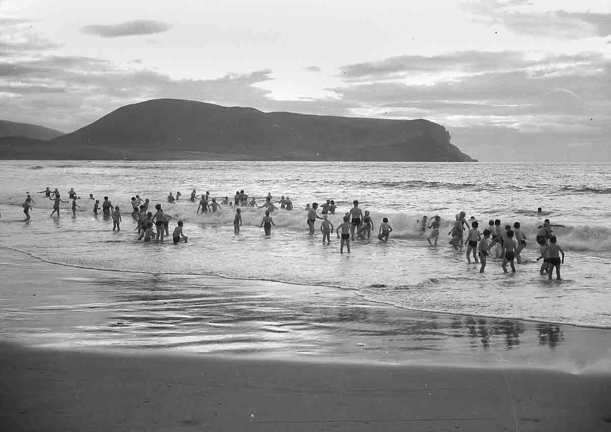 Swimmers at Warbeth Beach, near Stromness, c.1958.