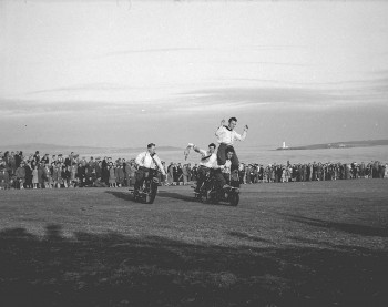 Cytrix motorcycle display team at Stromness Shopping Week, 1955.