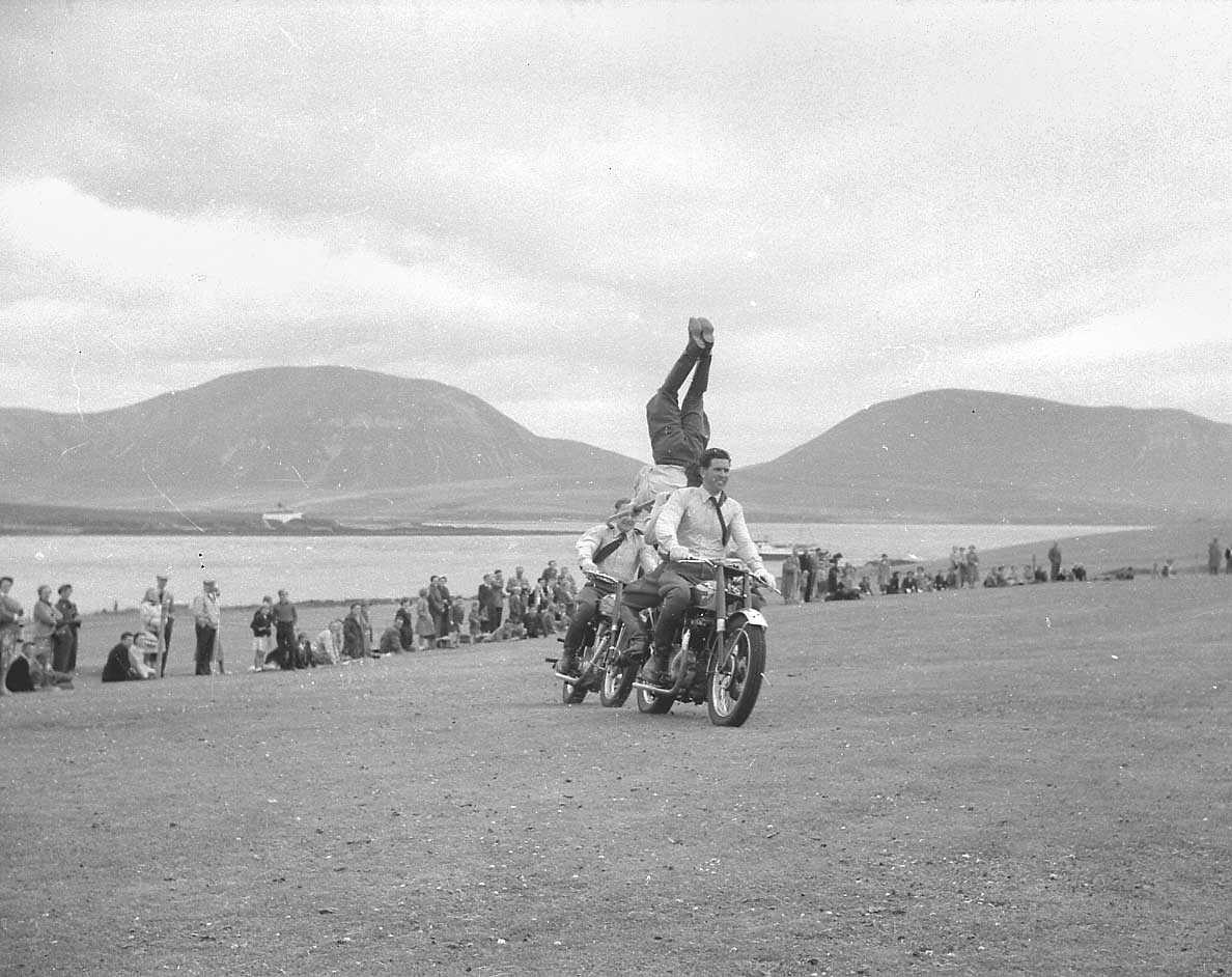 Cytrix motorcycle display team at Stromness Shopping Week, 1955.