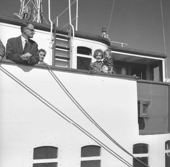 Passengers on board the 'St. Ola' at Stromness Pier, date unknown. Right: Grace Stevenson.