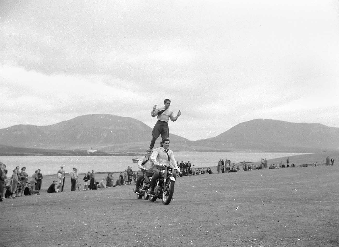 Cytrix motorcycle display team at Stromness Shopping Week, 1955.