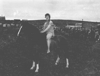 Anna Davidson as Lady Godiva in a Stromness Shopping Week parade, 1962.