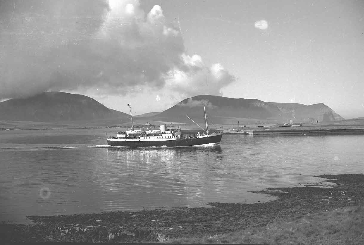 The M.V. St. Ola in Stromness Bay on her return from Scrabster, c.1950s.