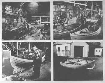J.W. Mackay, boat builder, and assistants at work in his shed, c.1959. The shed used to be part of Thornley Binders premises in Stromness. See Orcadian 12/3/1959, page 3. Mr Mackay was originally from Fara.