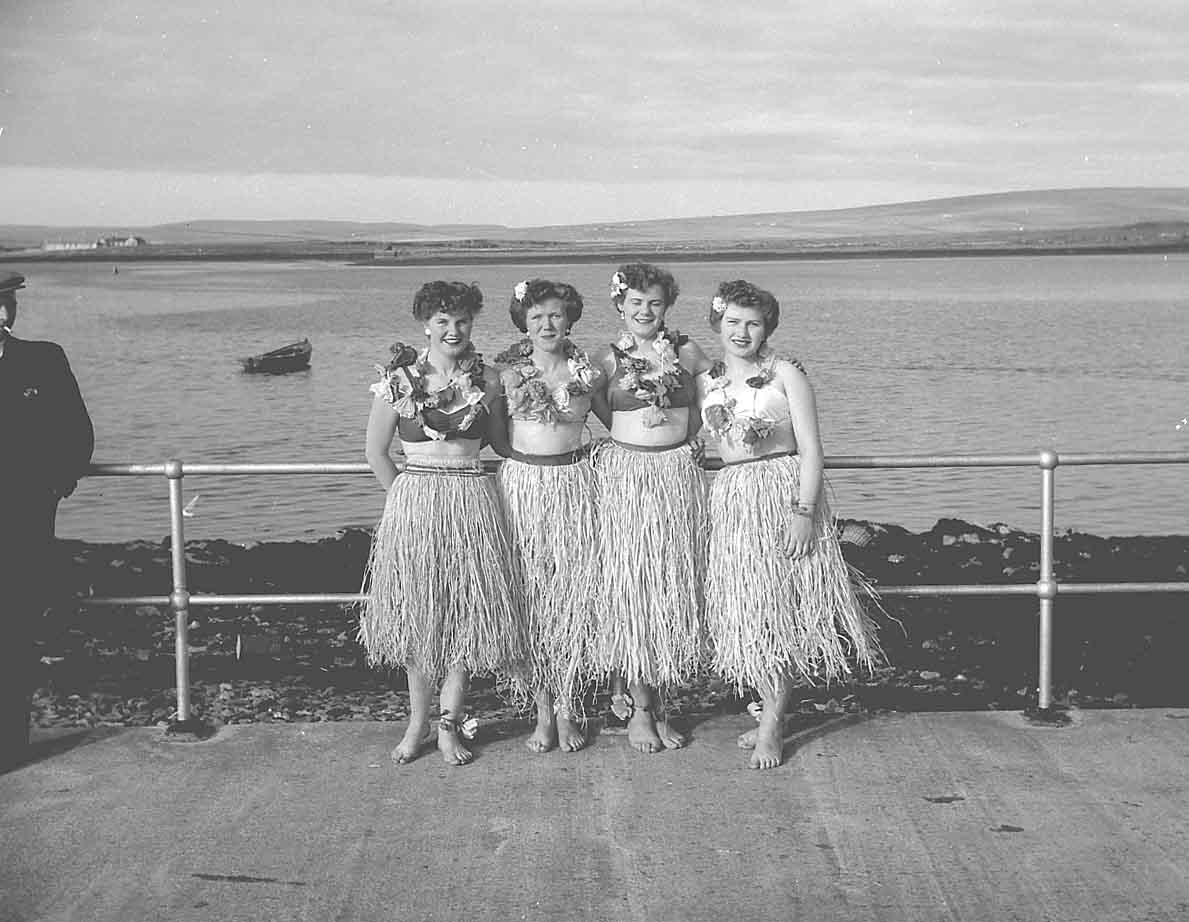 Hula Hula girls, Stromness Shopping Week parade, 1955.