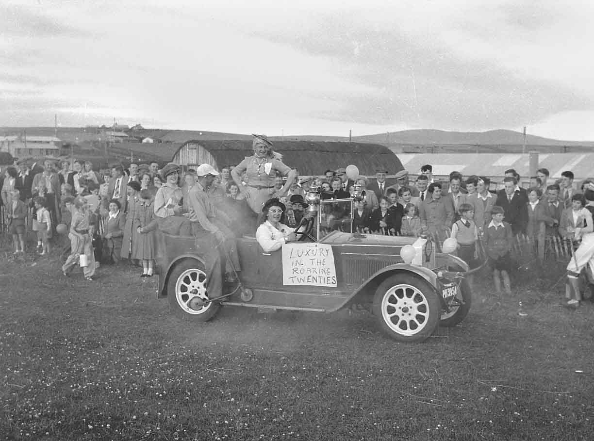 Entrants in a Stromness Shopping Week parade, 'The Roaring Twenties', 1955.