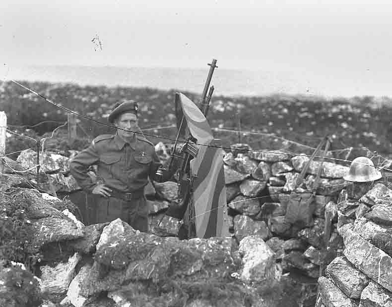 A soldier manning a gun emplacement, date unknown. Plate broken.