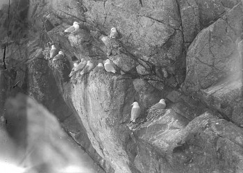 Kittiwakes nesting on cliffs, date unknown.